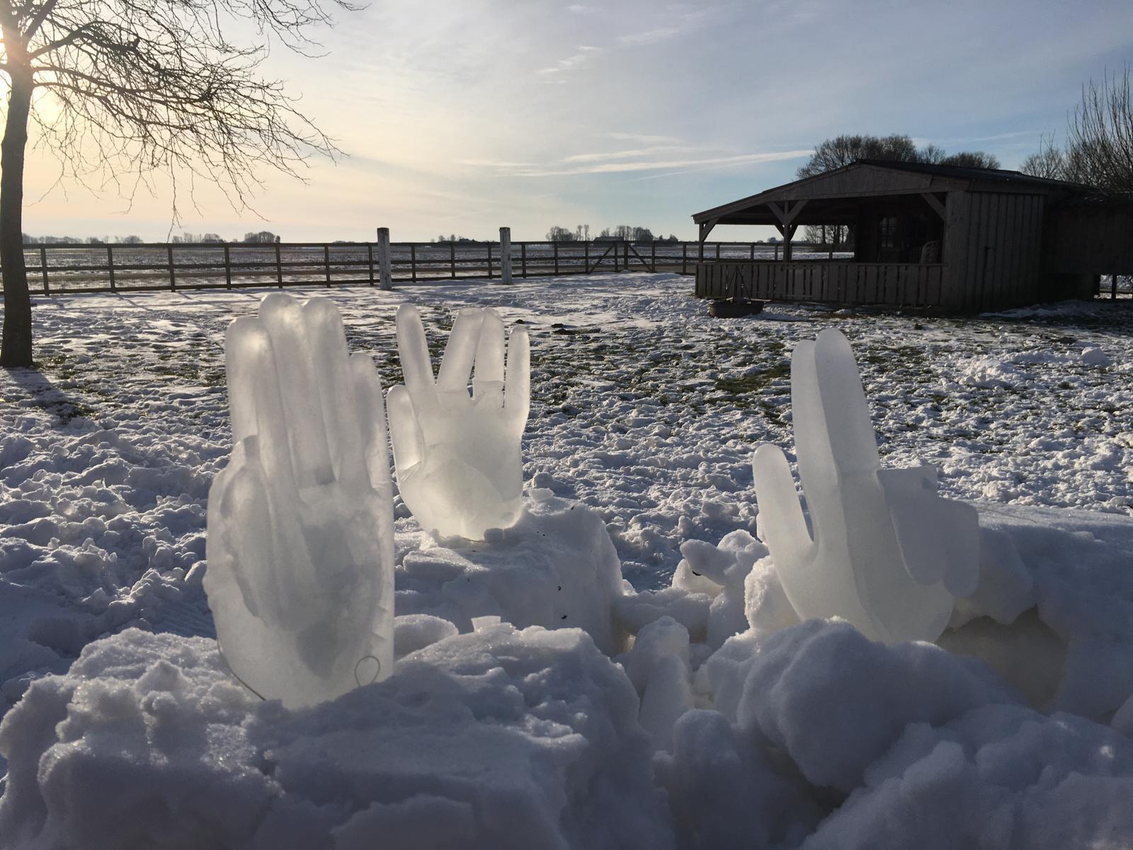 Zwaaiende ijshanden voor iedereen die voorbij komt.